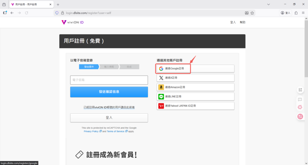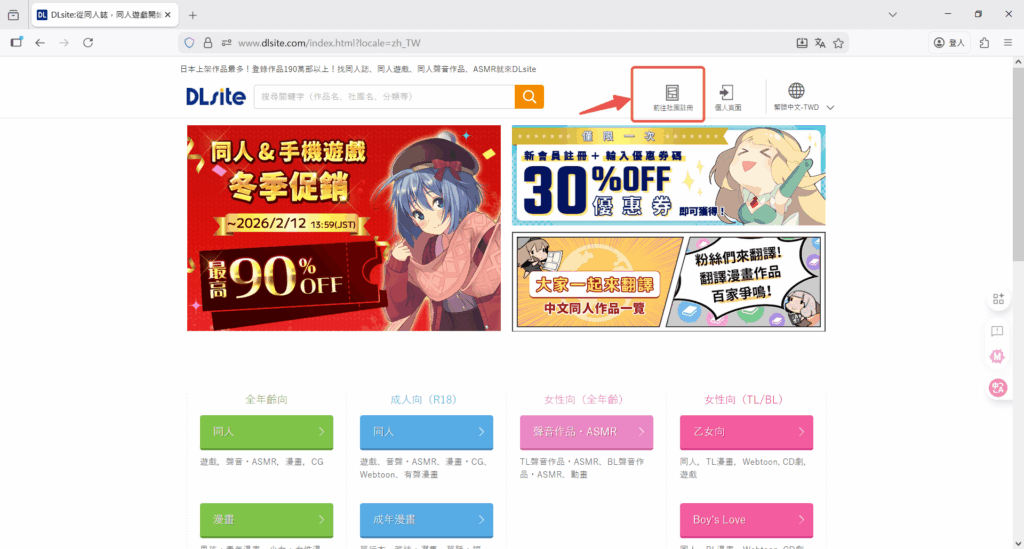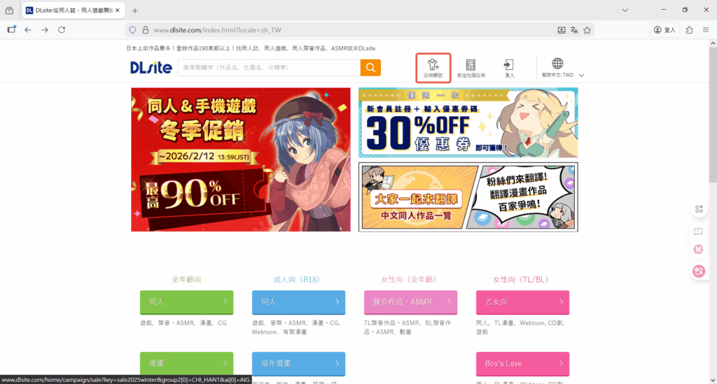 選擇註冊帳號DLsite連結在這裡